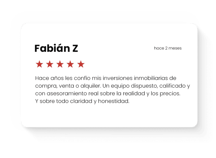 Primero visitamos y analizamos la propiedad, el entorno, la demanda y la competencia. Luego hacemos una devolución personalizada del informe de tasación explicándote el porqué del valor.